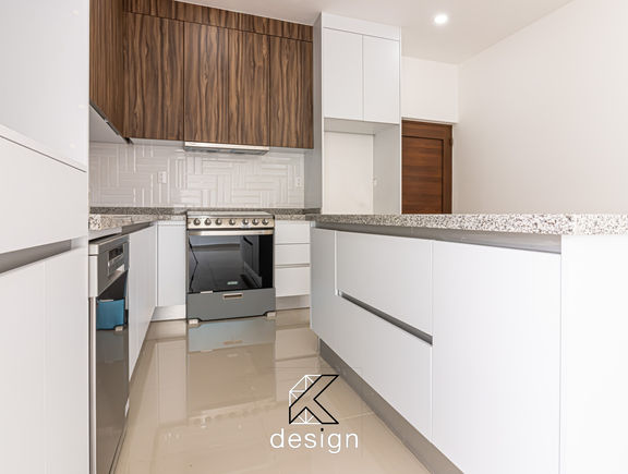 En el proyecto de esta cocina, se visualizó cada detalle para lograr darle un sentido de amplitud al espacio. Jugando con los colores, proyectando sobre todo el blanco y combinándolo con la tonalidad de madera para dar la calidez que se busca.